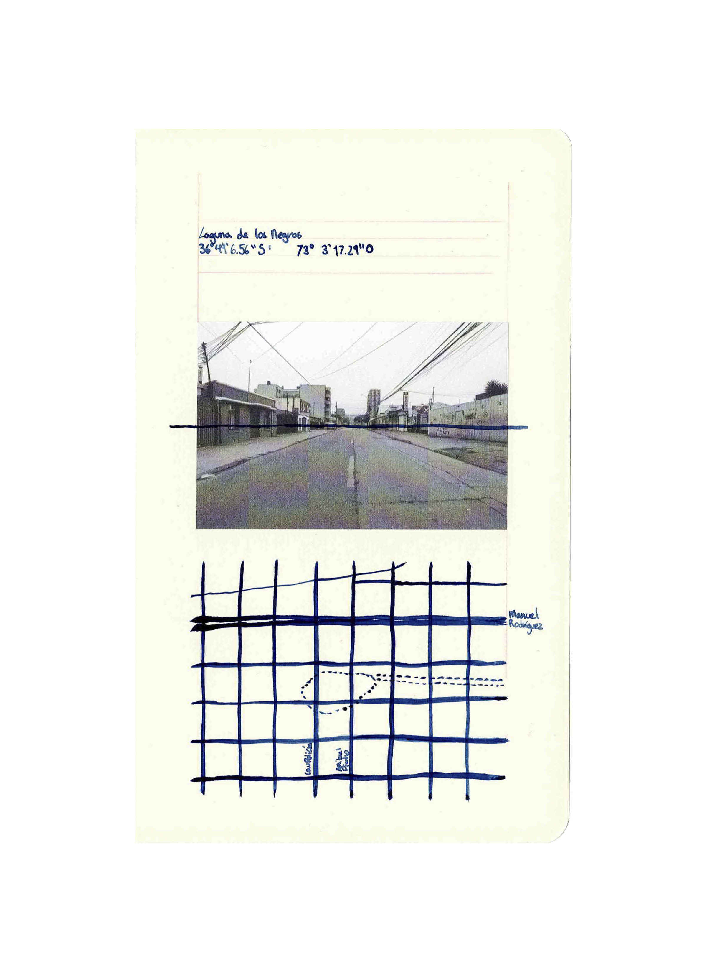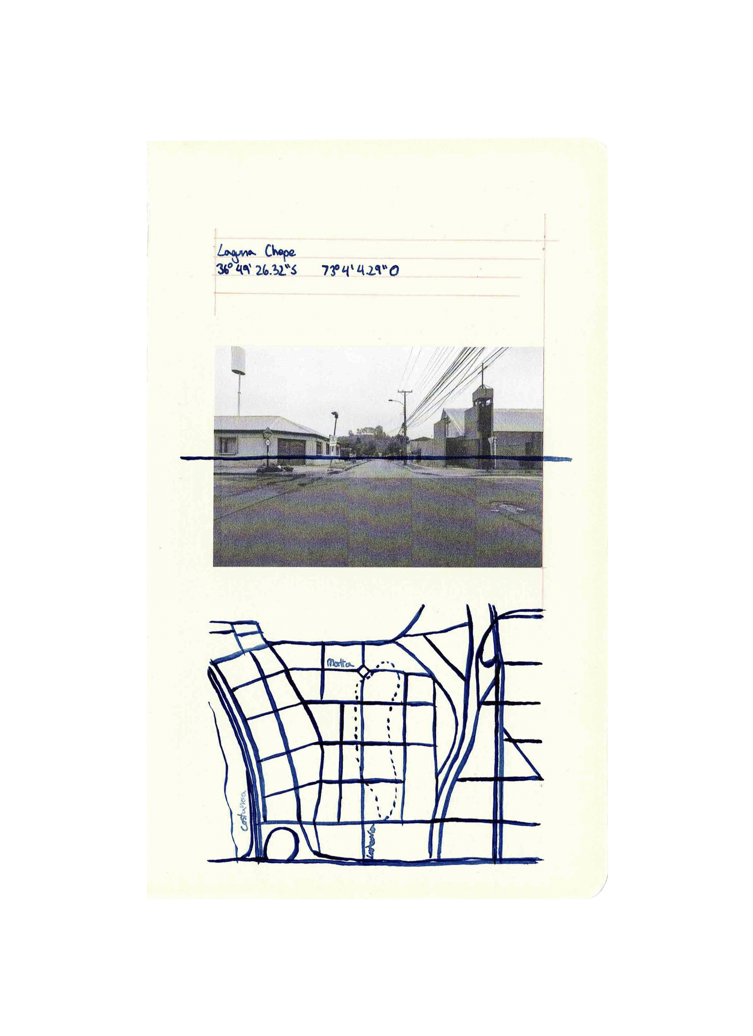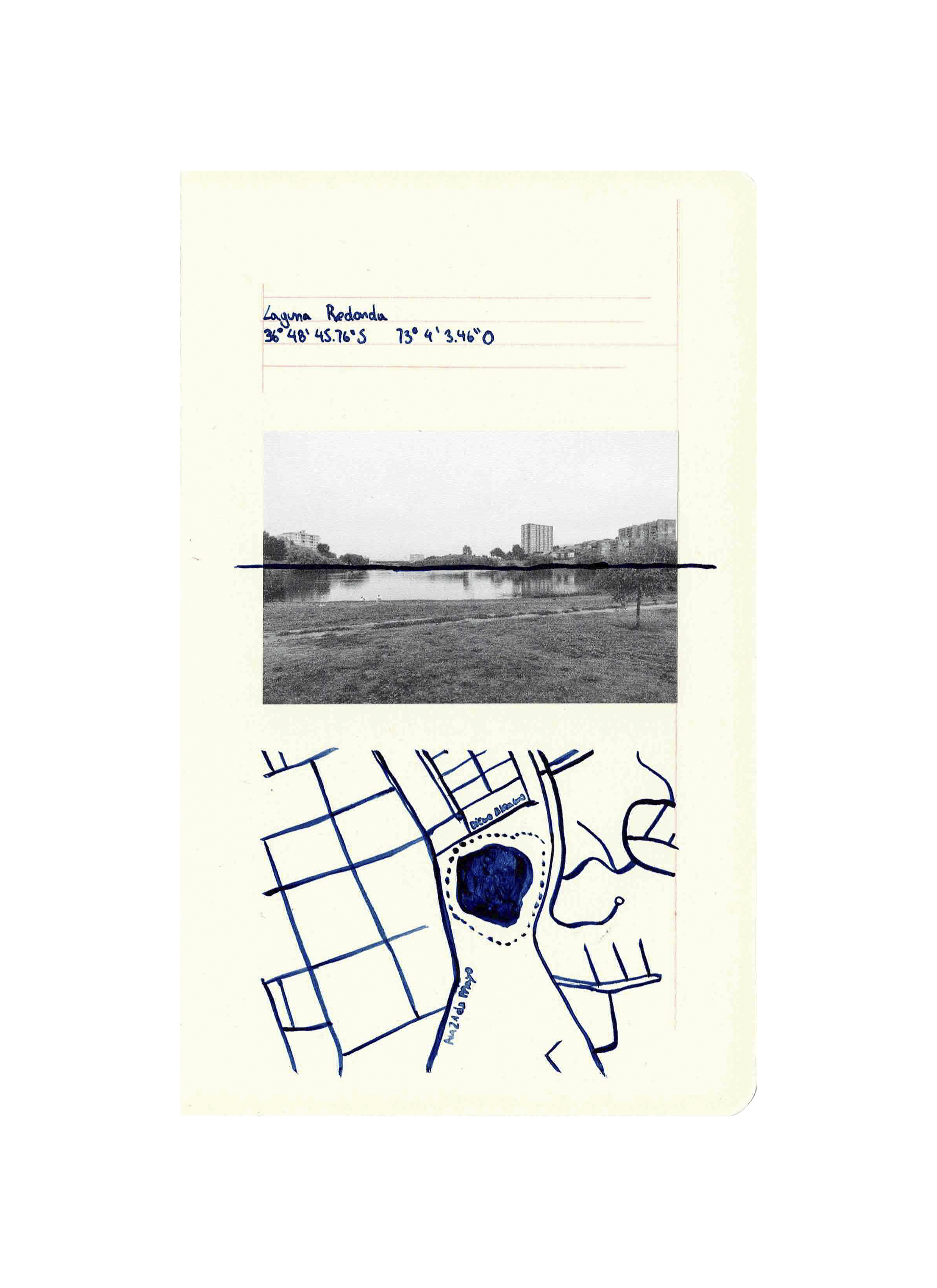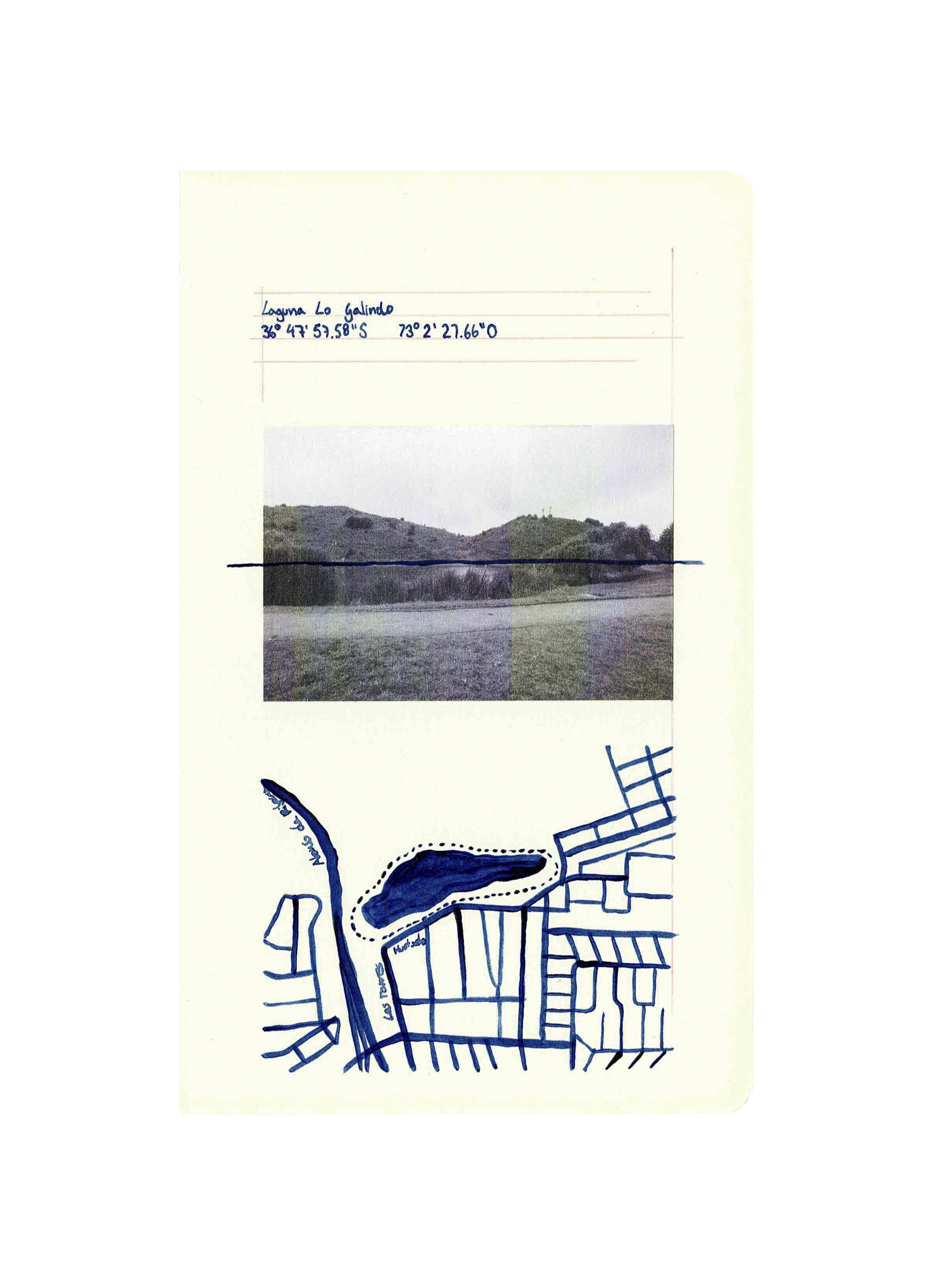 Lagunas (Fondart 2021) rescata la hidrografía primigenia del Valle de la Mocha al intervenir imágenes actuales con las referencias de los cuerpos de agua registrados en los mapas históricos (1752-1895), materializando el sustrato físico del paisaje, cuestionando cómo el desarrollo urbano ha alterado elementos identitarios. En contrapunto